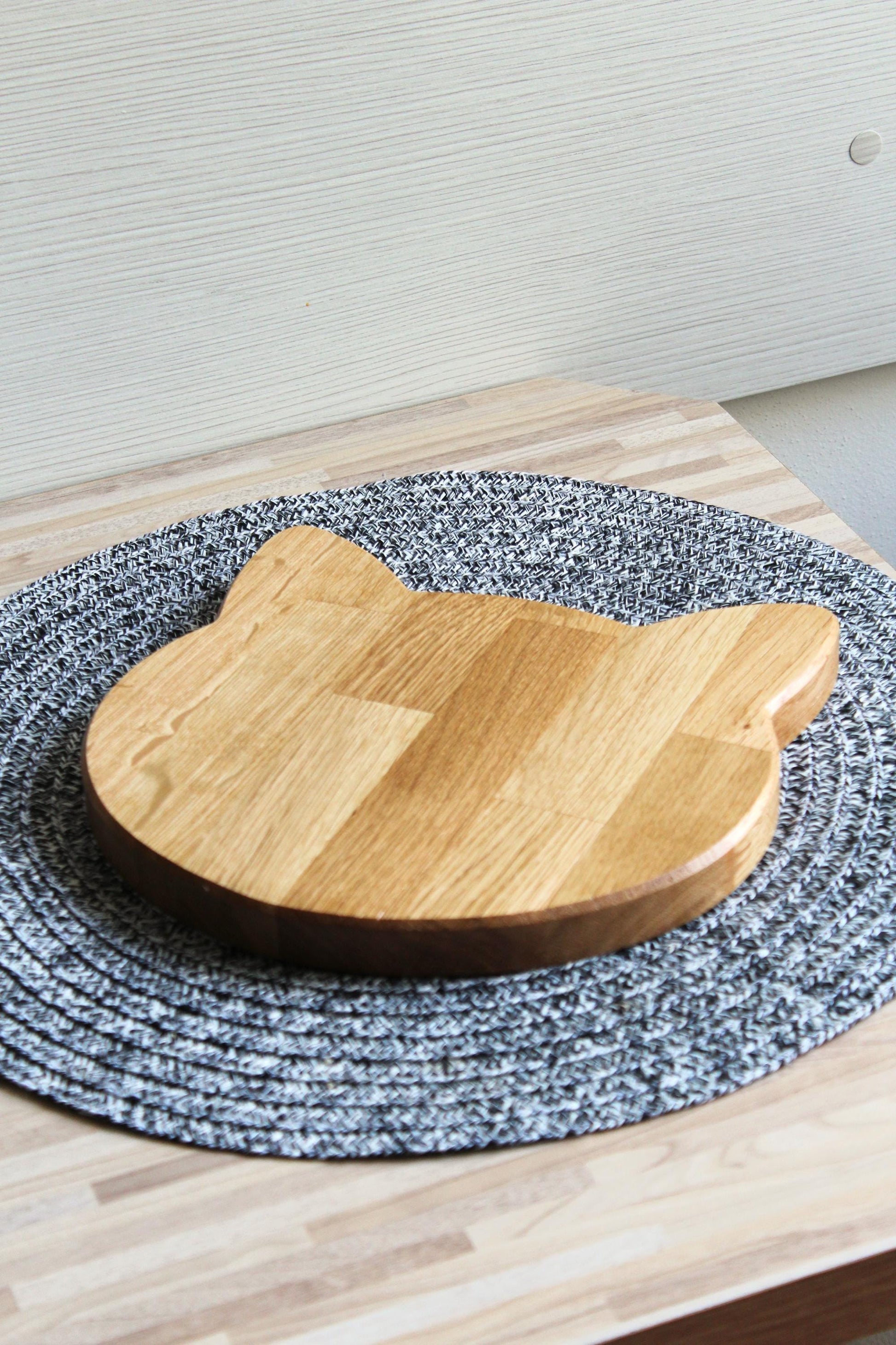 Looking for a stylish wooden accent with a touch of personality? This minimalist oak wood bowl in the shape of a cat is both functional and decorative. Whether you’re using it to serve snacks, sliced fruit, a sweet treat with your coffee, or simply as a place for your keys or jewelry – it adds natural charm to any space.