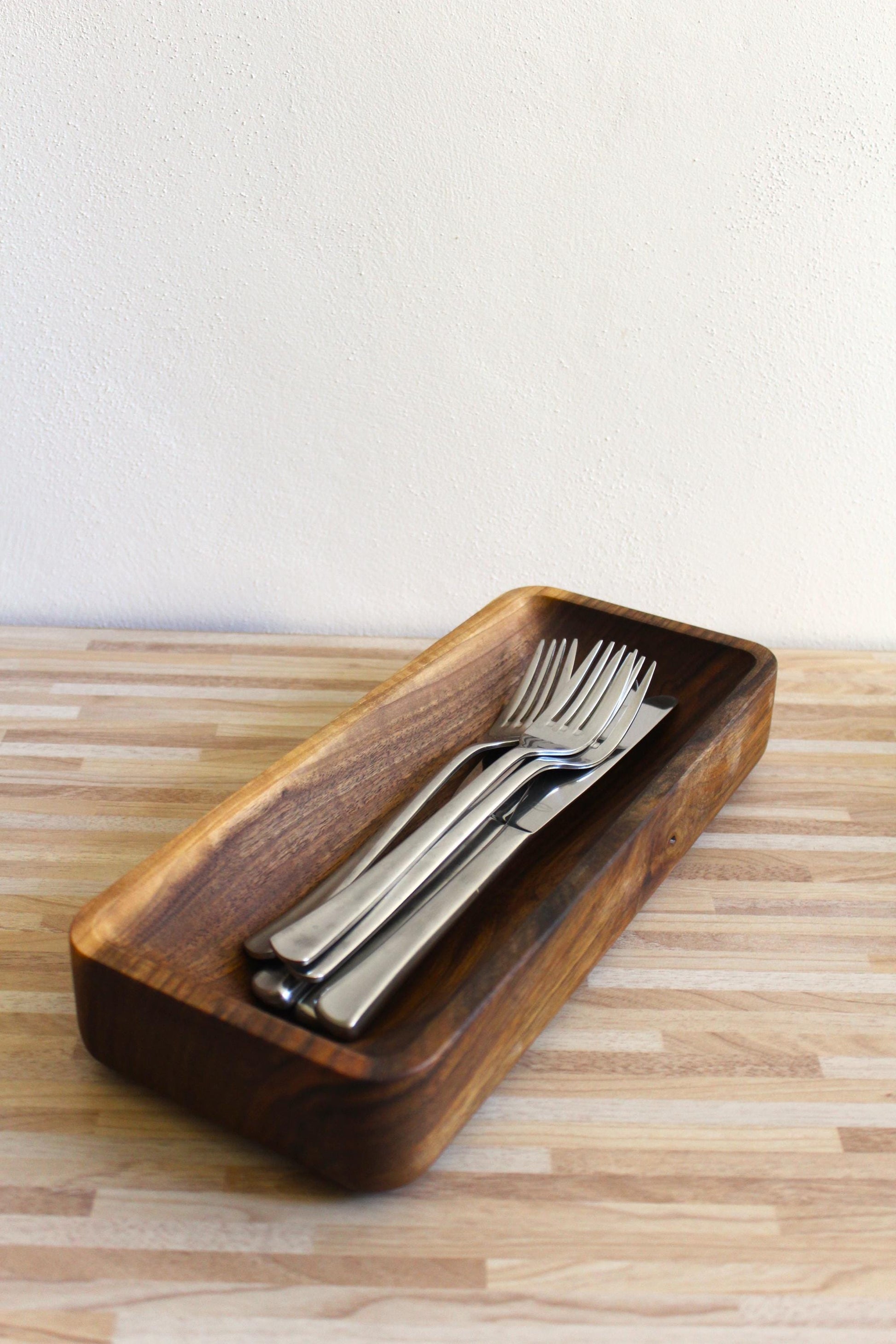 Handmade Walnut Wood Bowl: Rustic Serving Tray, Cutlery Holder